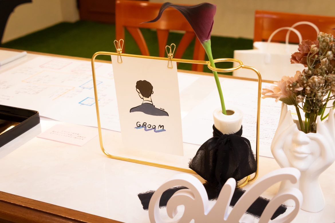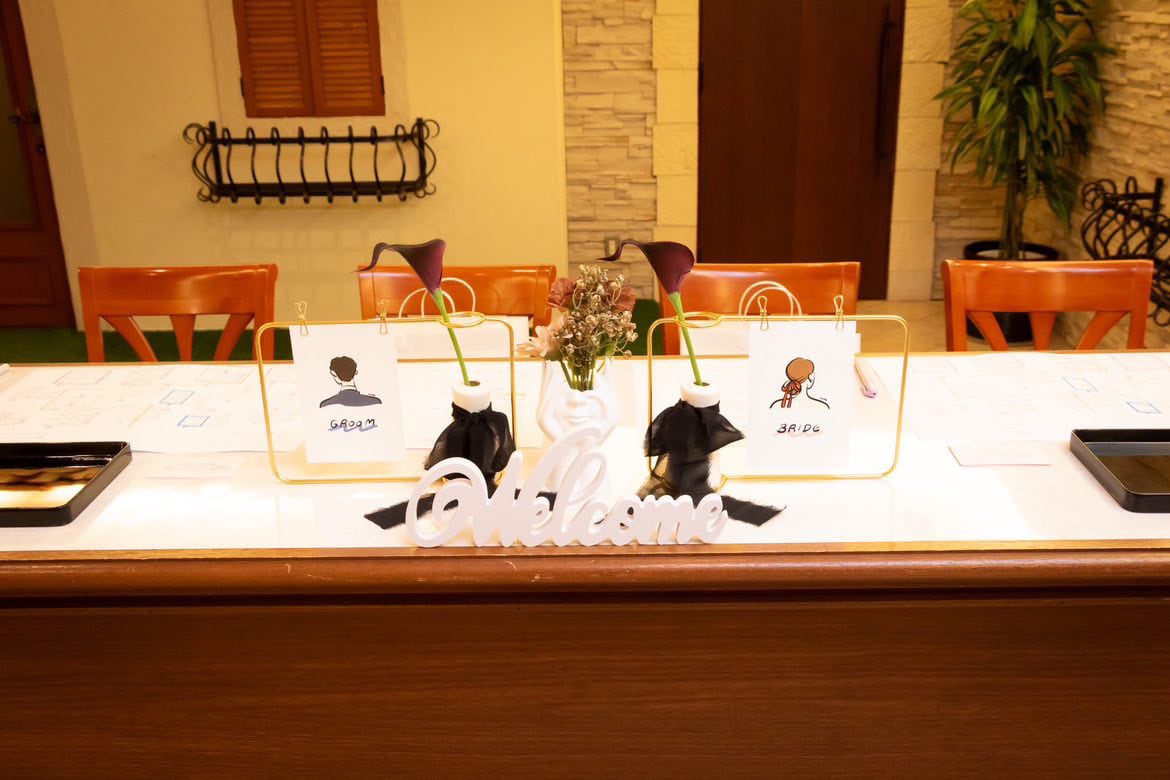 太めのしなやかなラインが特徴の受付サイン。